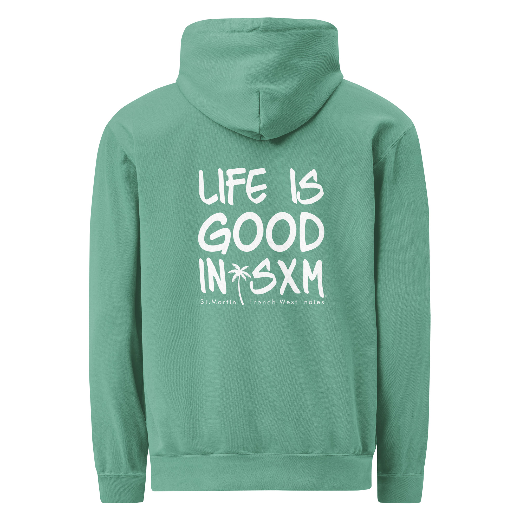 Designed for layering, lounging, and cooler days, this garment-dyed hoodie feels soft and easy to wear. With its lived-in look and relaxed fit, it keeps you cozy while carrying a hint of island sunshine through the seasons.